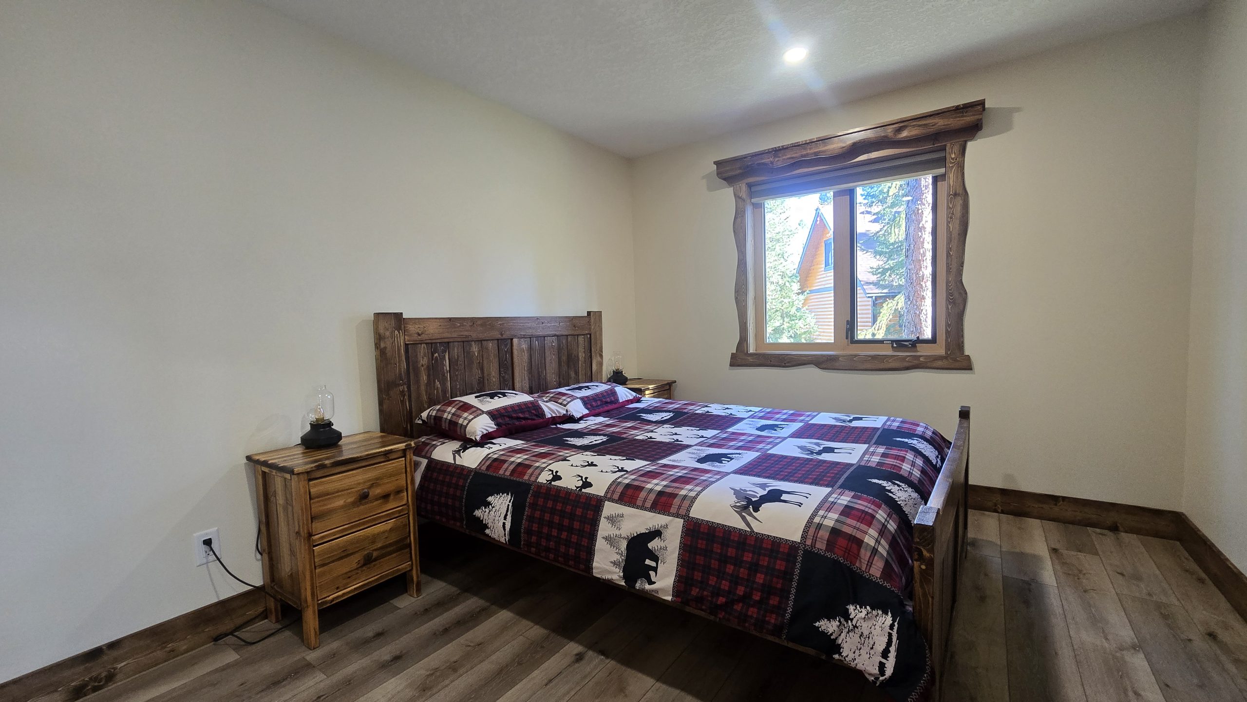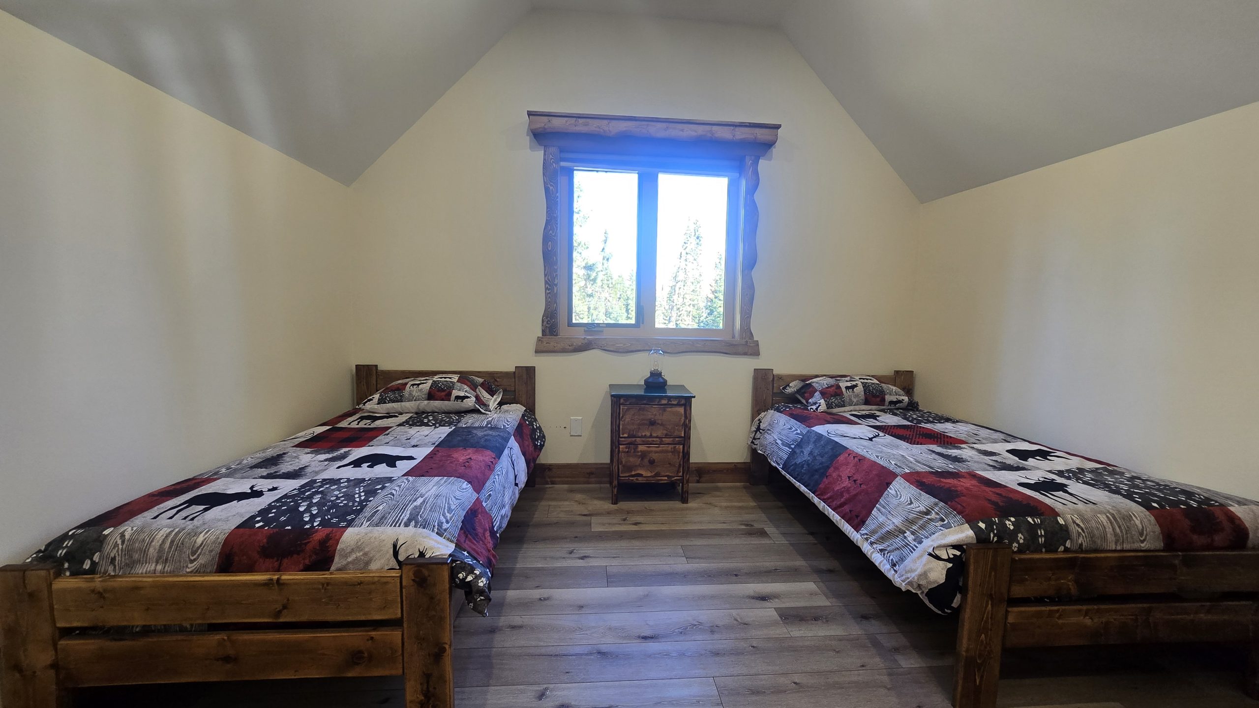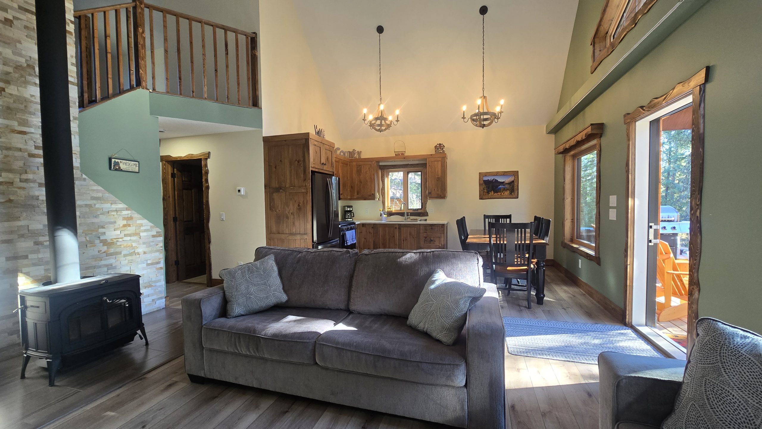 This beautiful cedar cabin offers everything you need for a peaceful and relaxing getaway. Enjoy the comfort of running water and refresh yourself under the spacious rain shower. The main floor features two inviting bedrooms, one with a queen bed and the other with two single beds, while the cozy loft upstairs provides two additional single beds, perfect for family or friends. The fully equipped kitchen includes everything you need to prepare your favorite meals, complete with a fridge and freezer. Gather around the dining table to share food, laughter, and stories, or unwind in the comfortable living room by the warmth of the wood stove after a day of exploring. Firewood is available for purchase at the office, and satellite TV is included for your entertainment. Step outside to your private deck and take in the peaceful surroundings. Enjoy a meal on the barbecue, sit by the fire pit, or relax at the picnic table as you listen to the sounds of nature. With convenient parking right beside the cabin, everything you need is at your fingertips. Duvets and towels are provided so all you need to do is arrive, relax, and enjoy your stay at Bearberry.