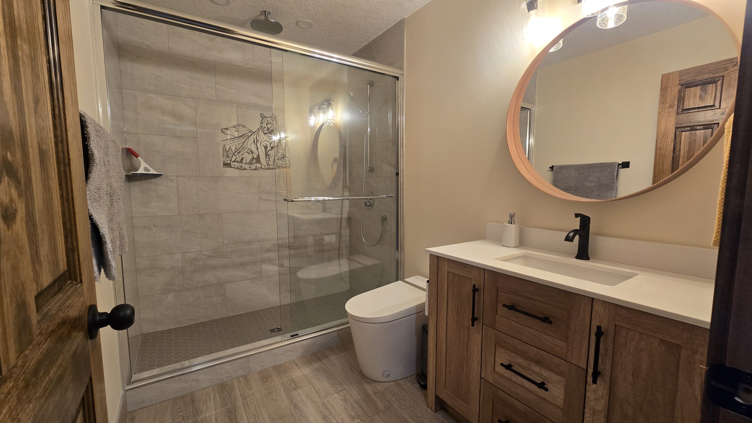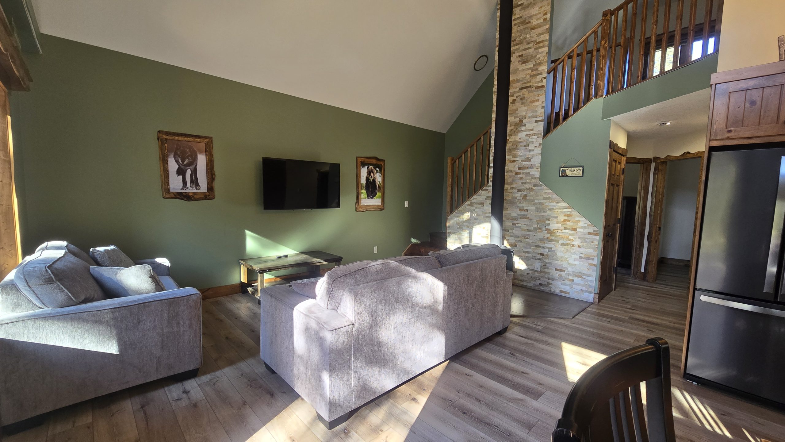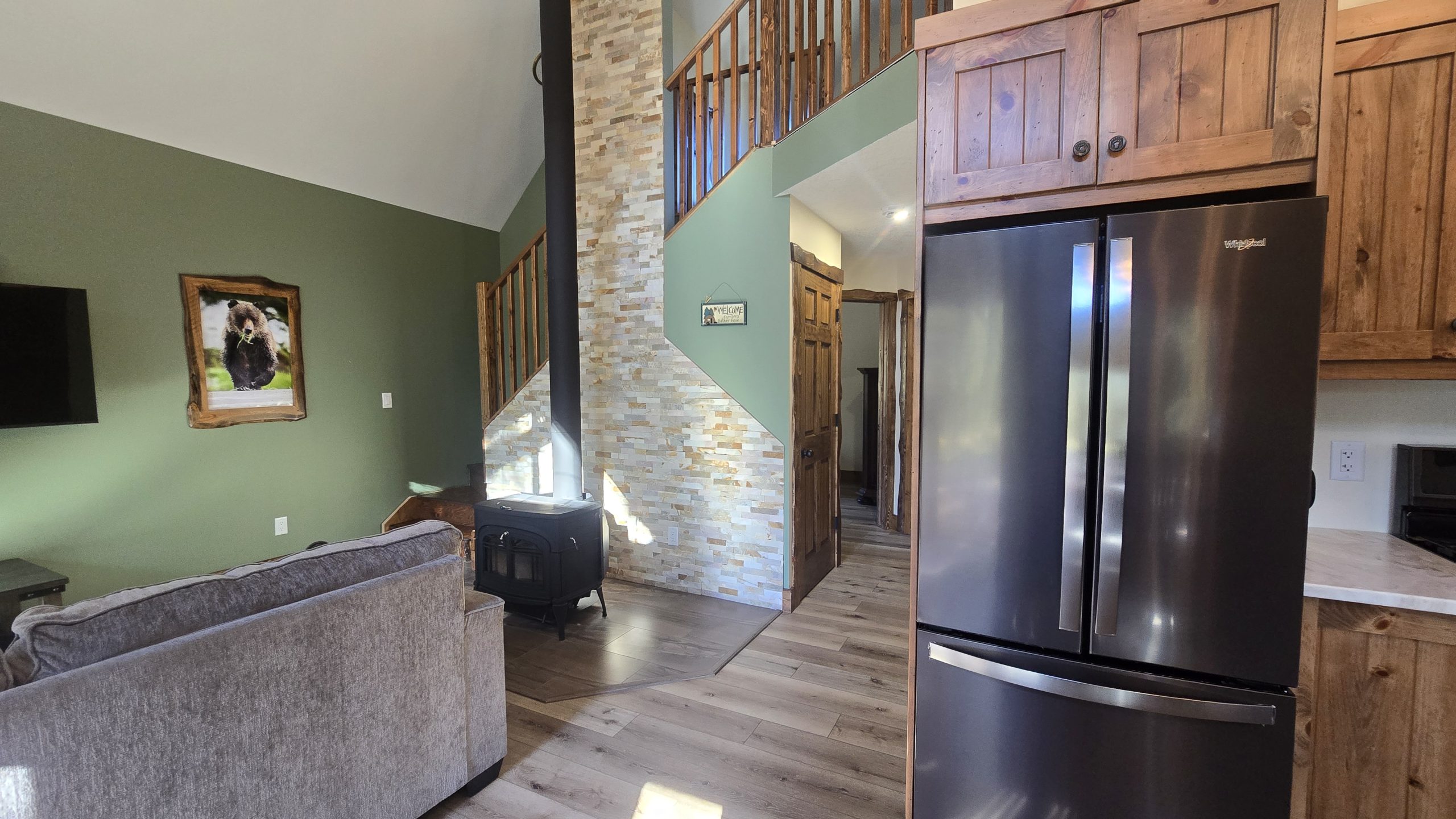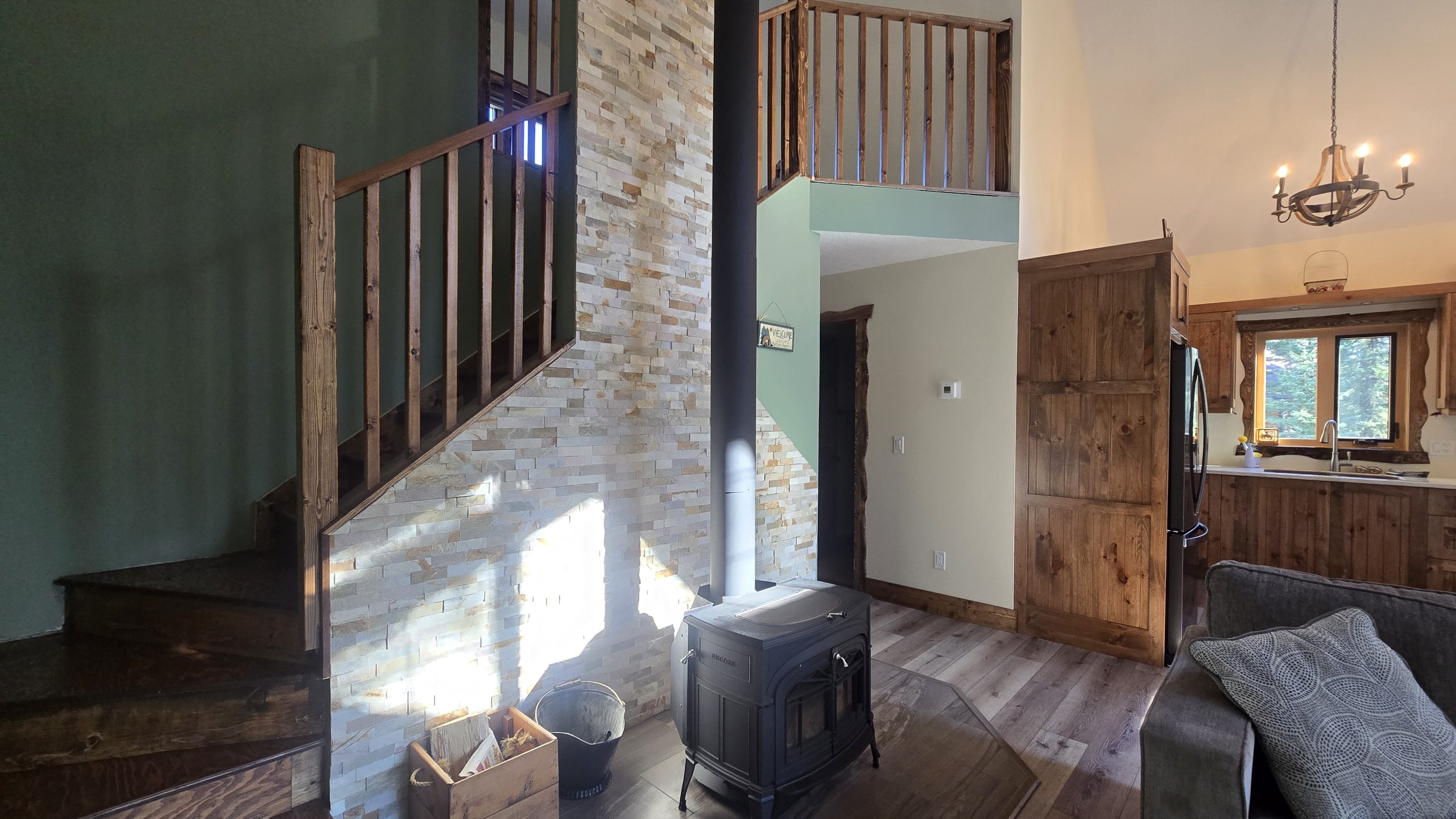 This beautiful cedar cabin offers everything you need for a peaceful and relaxing getaway. Enjoy the comfort of running water and refresh yourself under the spacious rain shower. The main floor features two inviting bedrooms, one with a queen bed and the other with two single beds, while the cozy loft upstairs provides two additional single beds, perfect for family or friends. The fully equipped kitchen includes everything you need to prepare your favorite meals, complete with a fridge and freezer. Gather around the dining table to share food, laughter, and stories, or unwind in the comfortable living room by the warmth of the wood stove after a day of exploring. Firewood is available for purchase at the office, and satellite TV is included for your entertainment. Step outside to your private deck and take in the peaceful surroundings. Enjoy a meal on the barbecue, sit by the fire pit, or relax at the picnic table as you listen to the sounds of nature. With convenient parking right beside the cabin, everything you need is at your fingertips. Duvets and towels are provided so all you need to do is arrive, relax, and enjoy your stay at Bearberry.