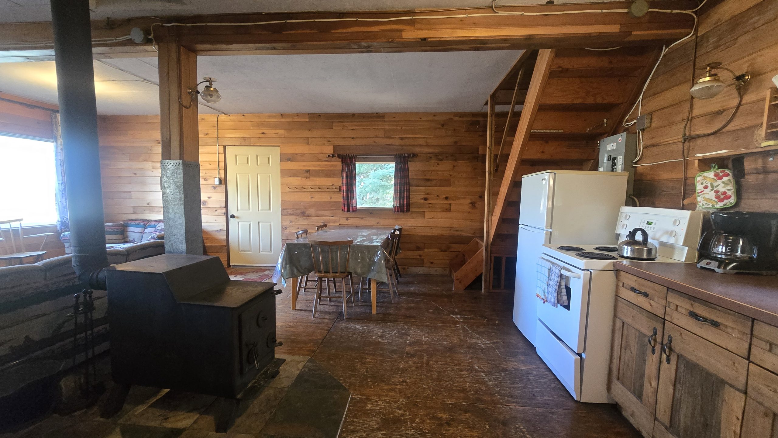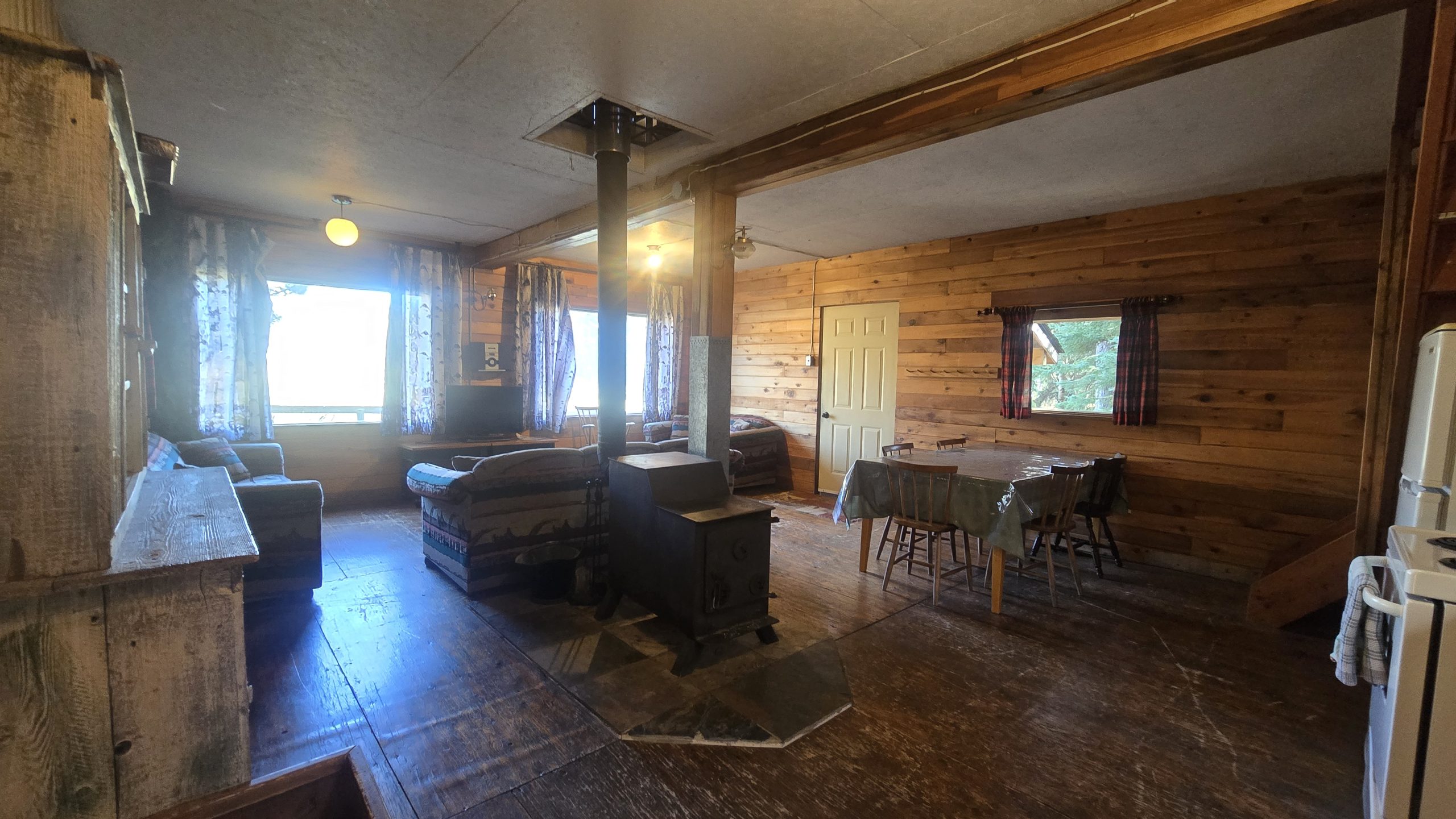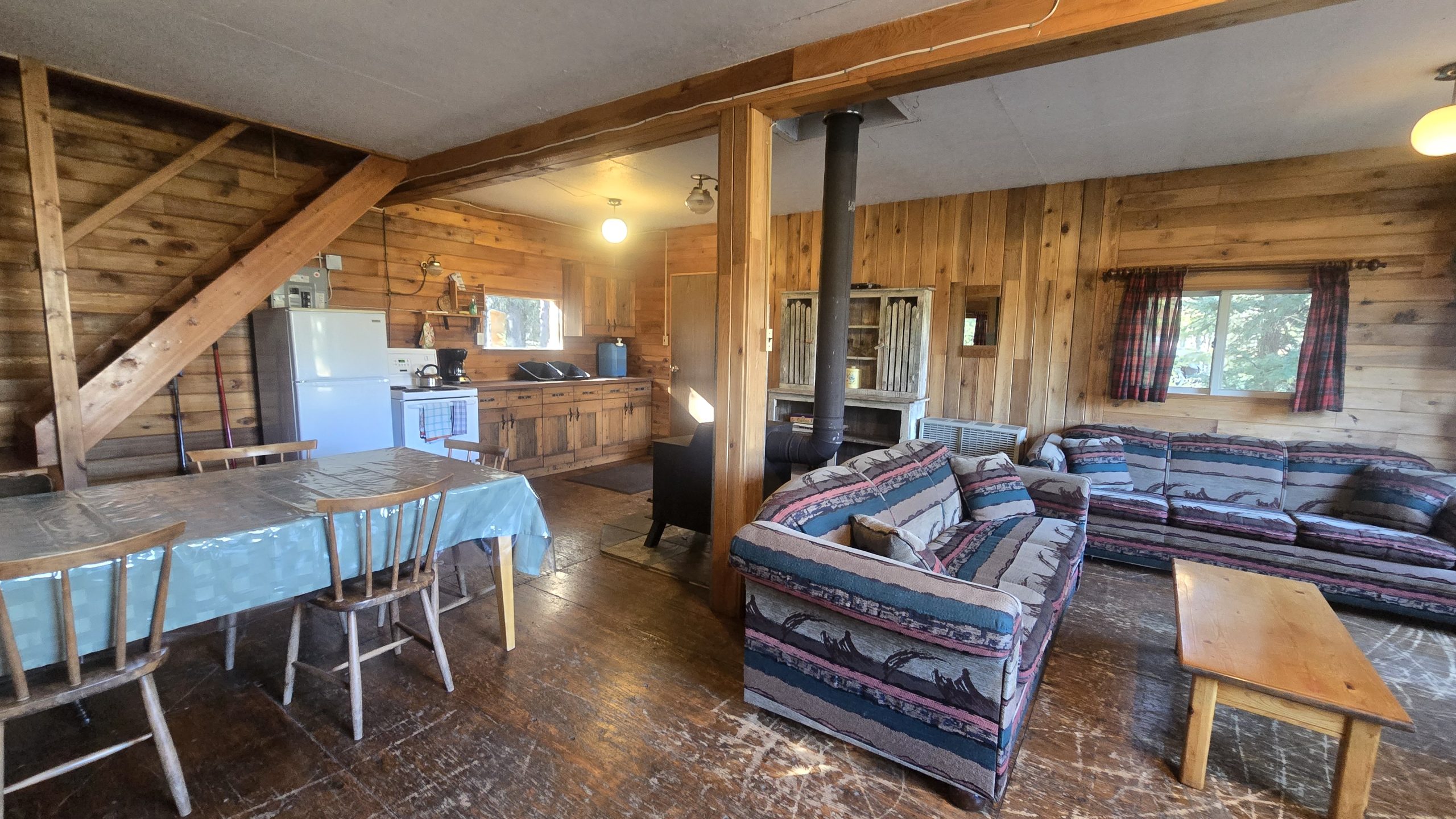 The charming A-frame cabin is perfect for families seeking a cozy, rustic getaway. While it does not have running water or an indoor bathroom, a nearby outhouse is available for those with an adventurous spirit. Inside, you’ll find an open loft with beds, a fully equipped kitchen stocked with pots, pans, dishes, cutlery, a fridge, and an oven. Potable water is provided for kitchen use. The cabin also features a dining area and a comfortable living room with a wood stove. Firewood is available for purchase at our office. Outside, enjoy your own fire pit and picnic table, perfect for evenings under the stars. The cabin sleeps up to six guests comfortably. Please remember to bring your own bedding and towels.