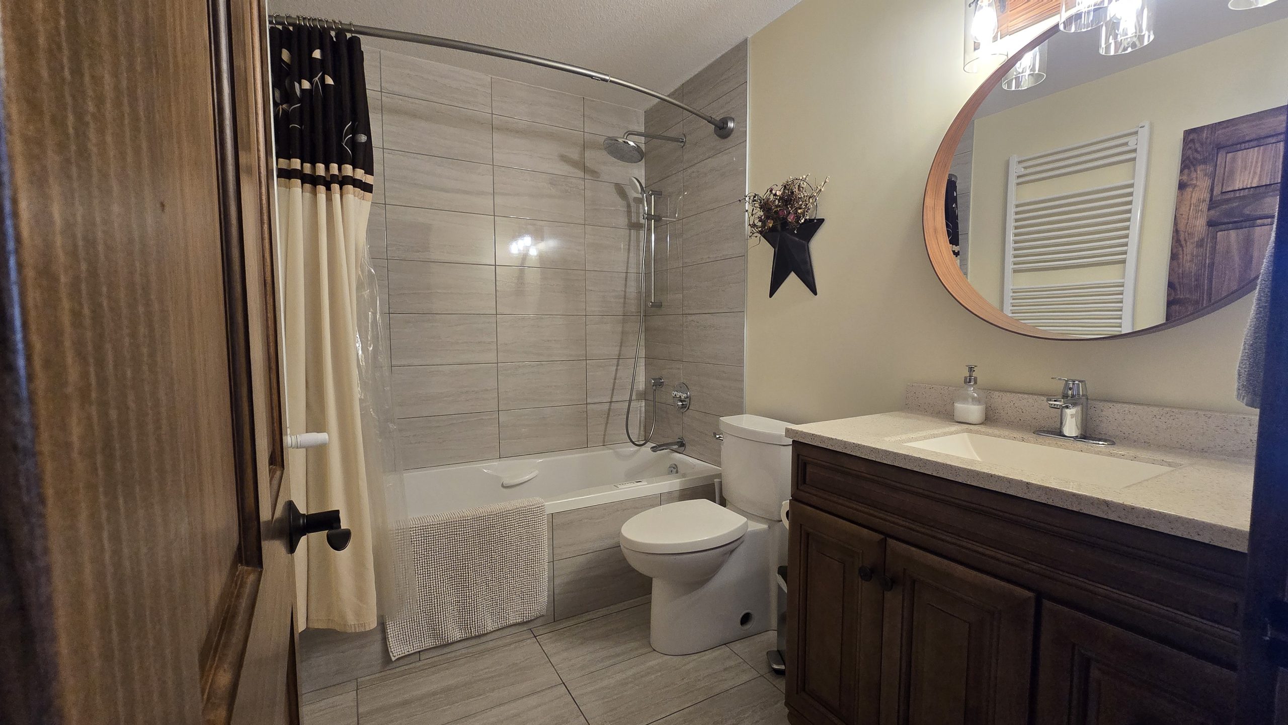 3-pce bathroom with jacuzzi bath tub and heated back rest.