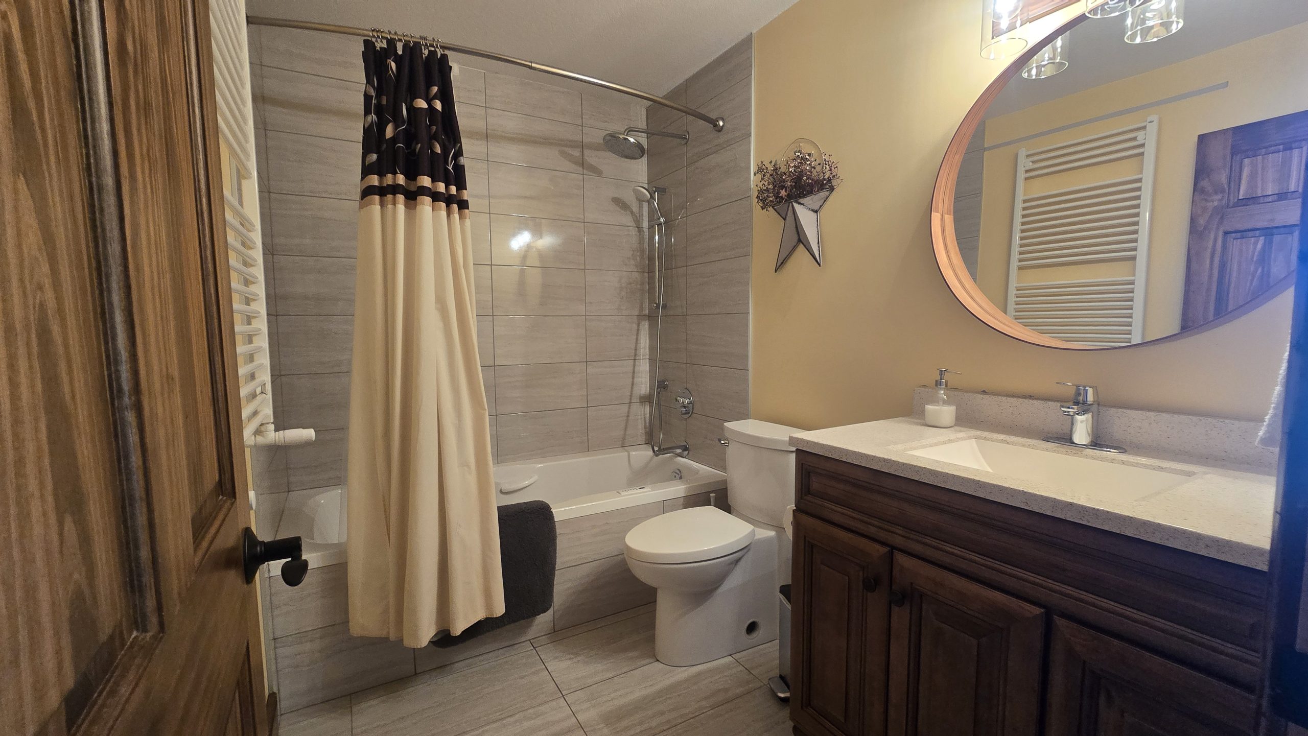 3-pce bathroom with jacuzzi bath tub and heated back rest.